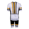 Das Trikot ist mit einem durchgehenden, halbautomatischen Reißverschluss ausgestattet. Hinten befinden sich 3 offene Taschen sowie eine zusätzliche Tasche mit 10 cm Reißverschluss. Das Material ist atmungsaktiv, flexibel und speziell für den Radsport entwickelt.